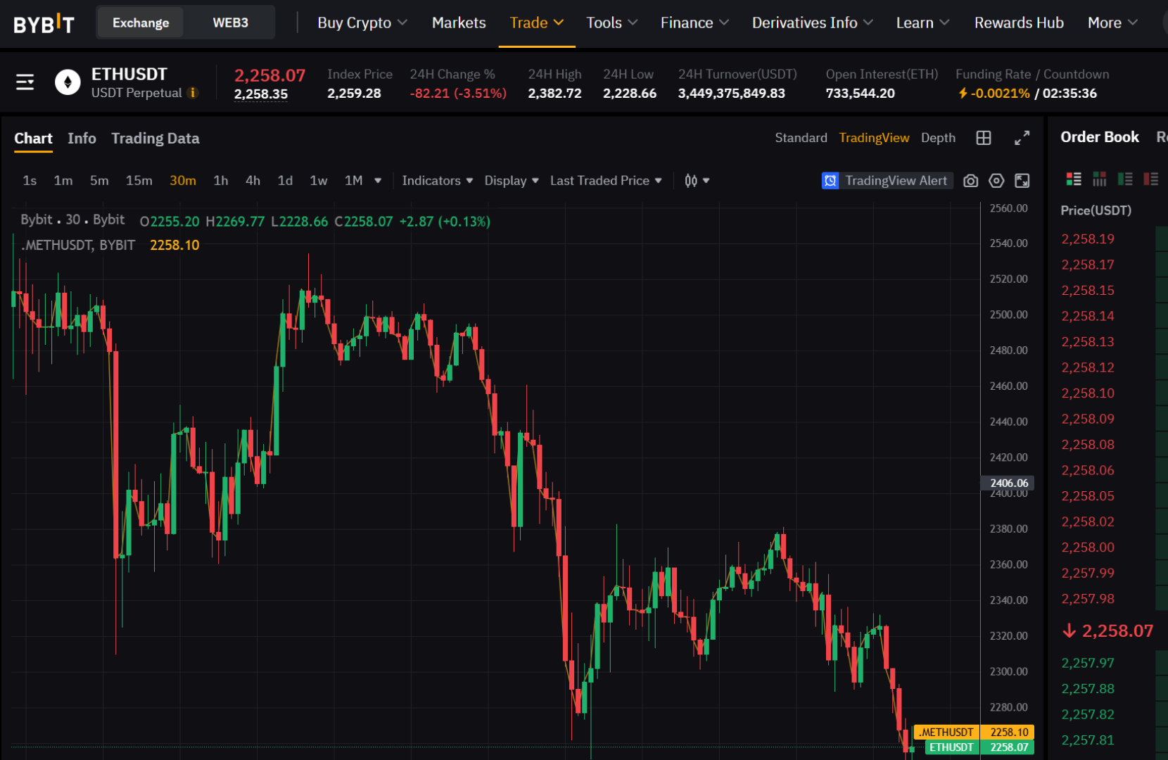 Ethereum cryptocurrency on ByBit website