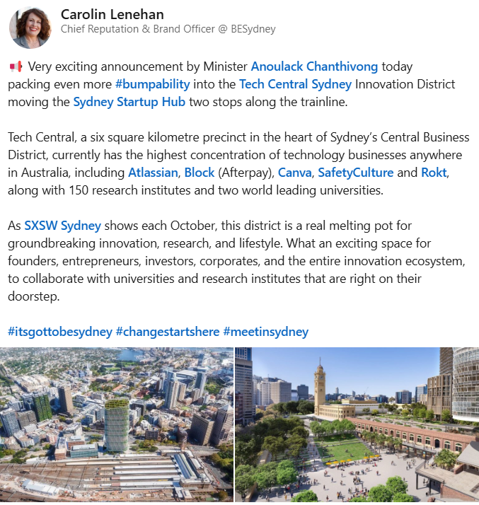 “The NSW Government has announced a new plan to unlock the full potential of the Tech Central Innovation District (Tech Central) – Australia’s largest technology and innovation hub.” - The Hon. Anoulack Chanthivong MP