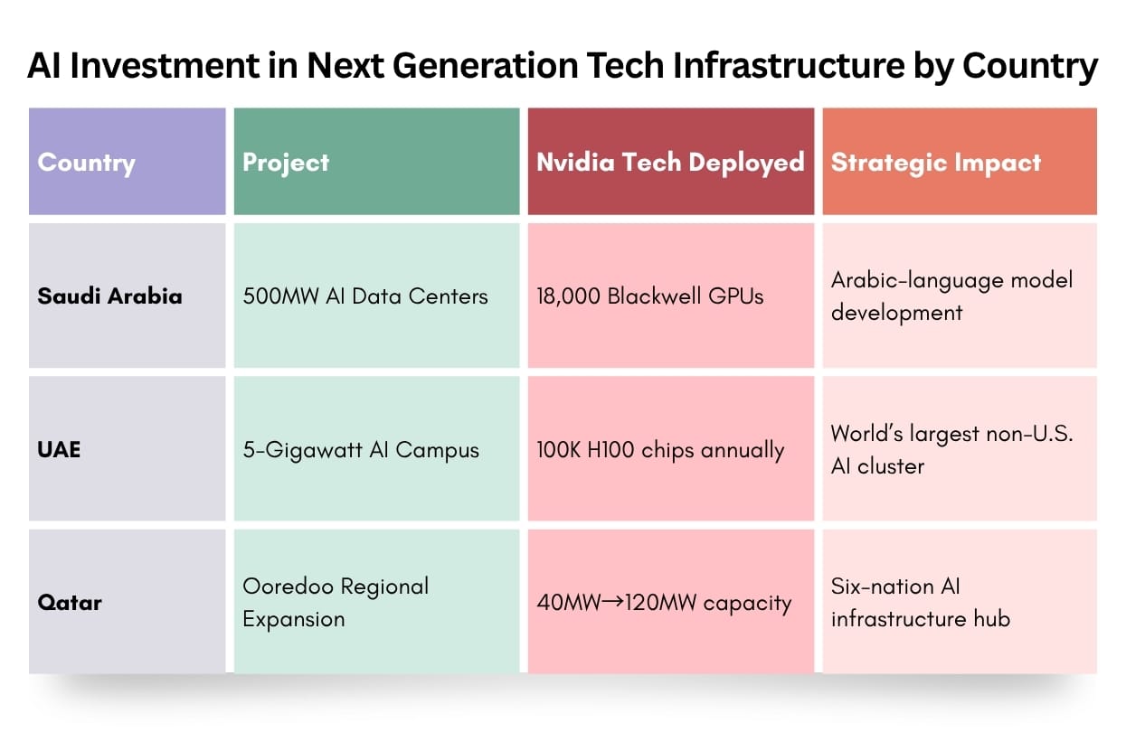 The recent Middle East tour highlighted how central U.S. tech firms have become in executing foreign policy. Companies like Nvidia, AMD, and AWS were pivotal, their infrastructure and advanced chips becoming tools of American statecraft, blurring the line between commercial enterprise and geopolitical influence.