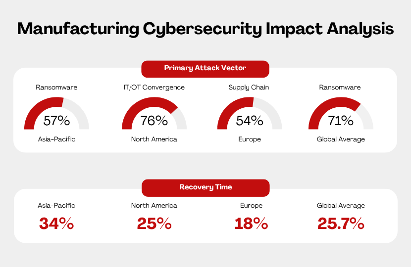 Asia-Pacific's role as the global manufacturing hub makes it the primary battleground for cyber warfare, accounting for 34% of global cyber incidents with a 13% increase year-over-year. The concentration of manufacturing in countries like China, Taiwan, South Korea, and Southeast Asian nations creates systemic vulnerabilities that attackers systematically exploit. Singapore's experience—where manufacturing became the most targeted sector—provides a microcosm of regional challenges, with the city-state's dense digital infrastructure and highly digitalized companies making it an attractive target while its role as a regional manufacturing hub amplifies the impact of successful attacks.
